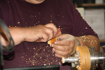 Und immer ganz, ganz feine Späne. Hier arbeitet man nämlich im Querholz.