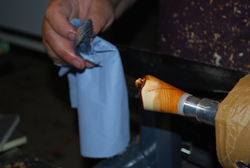 Nach kurzer Wartezeit geht es mit dem Schleifen weiter. |