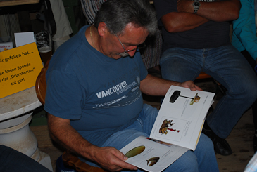 Er blättert in der Dokumentation zum Drechsler-Treffen im Mai und freut sich an den Objekten. |