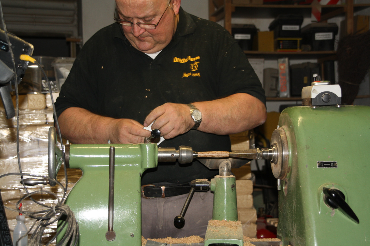 Eines gibt er gleich zu bedenken: Schreibgeräte sollte man in Kleinserie erstellen, denn sonst wird der andauernde Umbau an der Drechselbank zu mühsam.