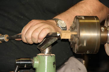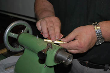 Wenn der Kleber getrocknet ist, werden die beiden Enden bis zum Messingröhrchen abgedrecht und sorgfältig plangedreht.