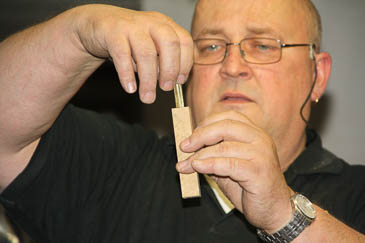 Martin berichtet von seinen neuen Erfahrungen mit dem Drechseln von Schreibgeräten. Eine Kantel, Pen blank genannt, hat er bereits in der Hand.