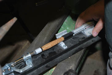 Das Messingröhrchen wird und ständiger Drehung ganz in den blank eingebracht.