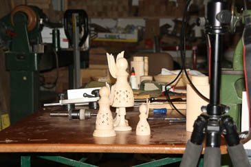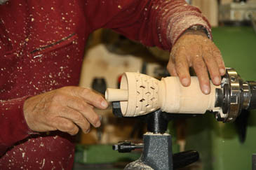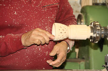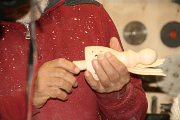 ... die Öffnungen werden von Reinhard mit dem Schnitzmesser nachbearbeitet. |
