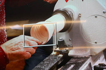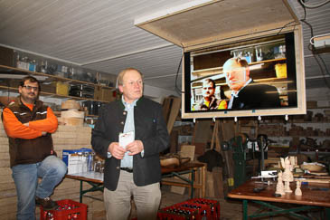 Bevor es jedoch mit der Vorführung losgeht, stellt Ignaz Einsiedler (live und im Breitwand-TV) lebhaft und ausführlich die Allgäuer Wert- und Edelholz GmbH aus Wildpoldsried vor.