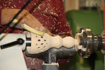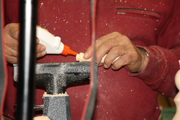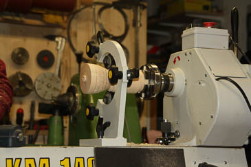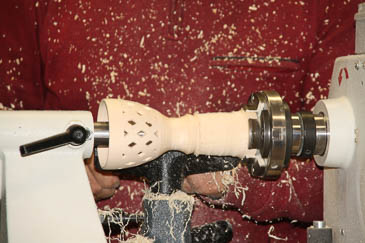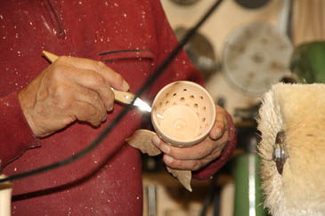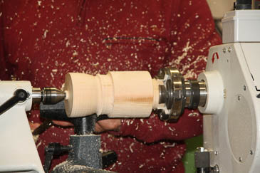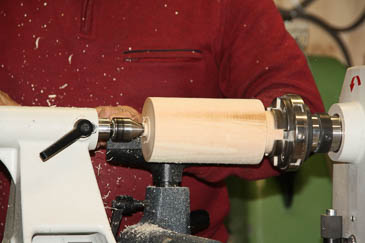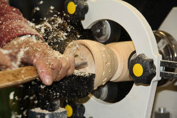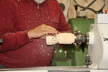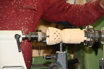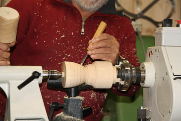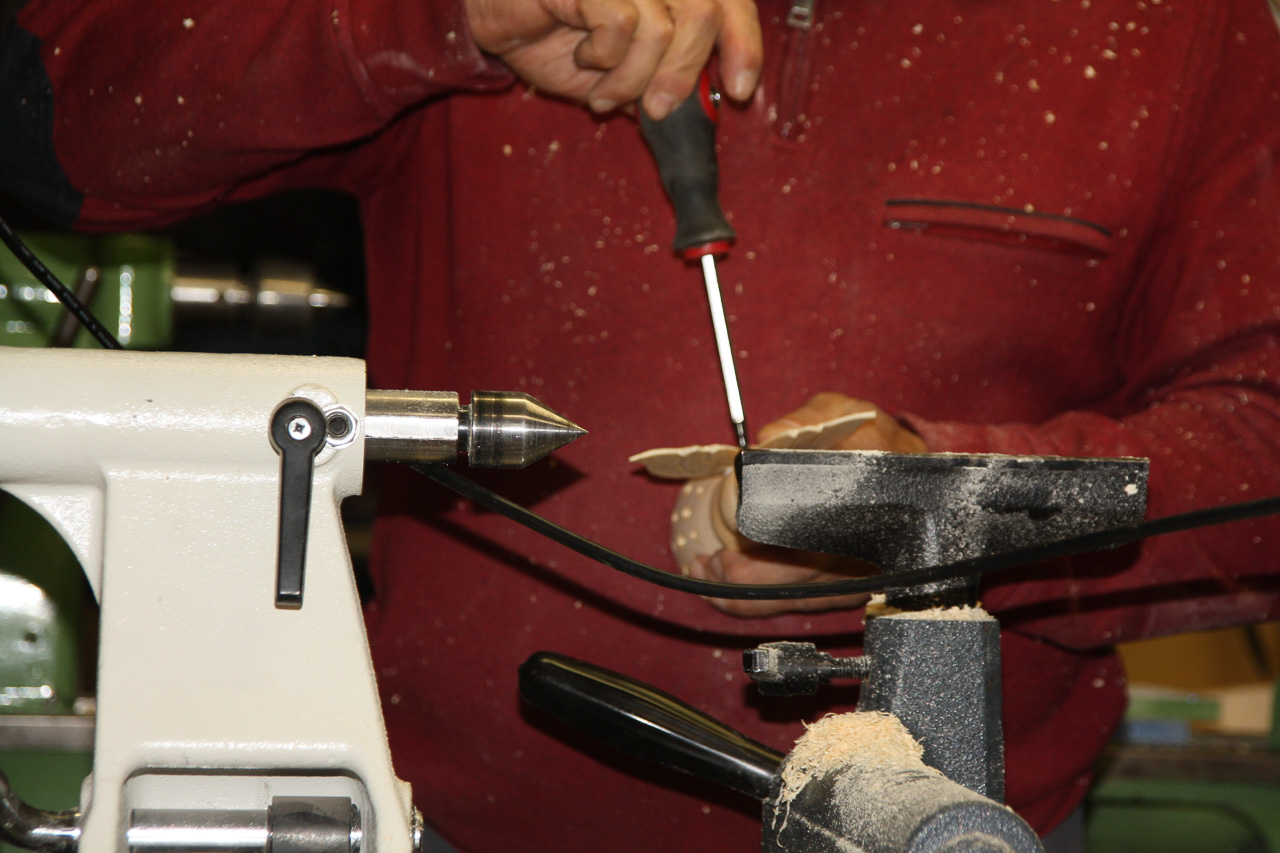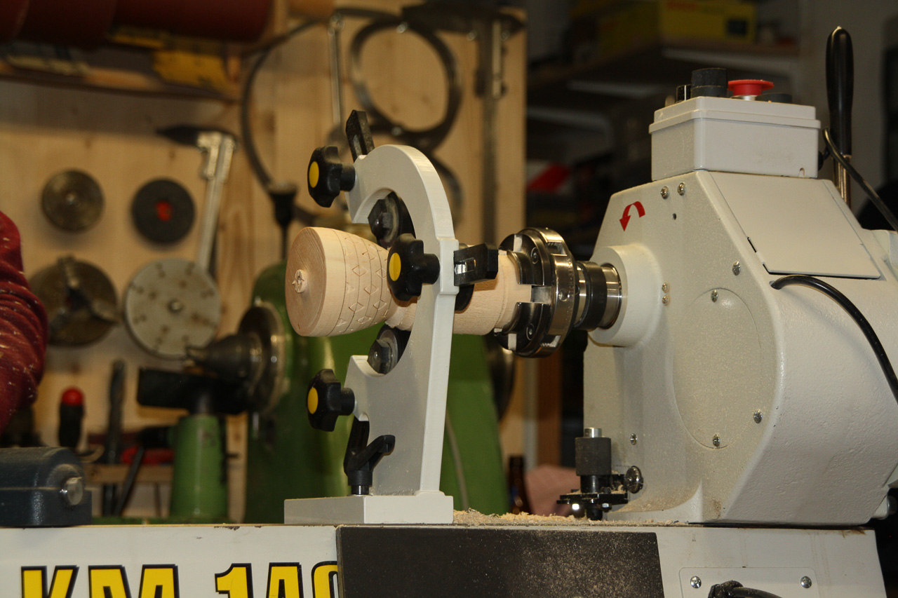 Zum Aushöhlen wird der Grundkörper mit einer Lünette stabilisiert. |