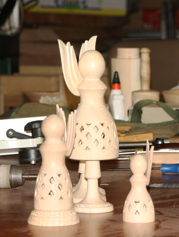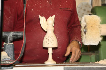 Jetzt kommen die geschnitzten Flügel an den Engel. |
