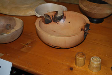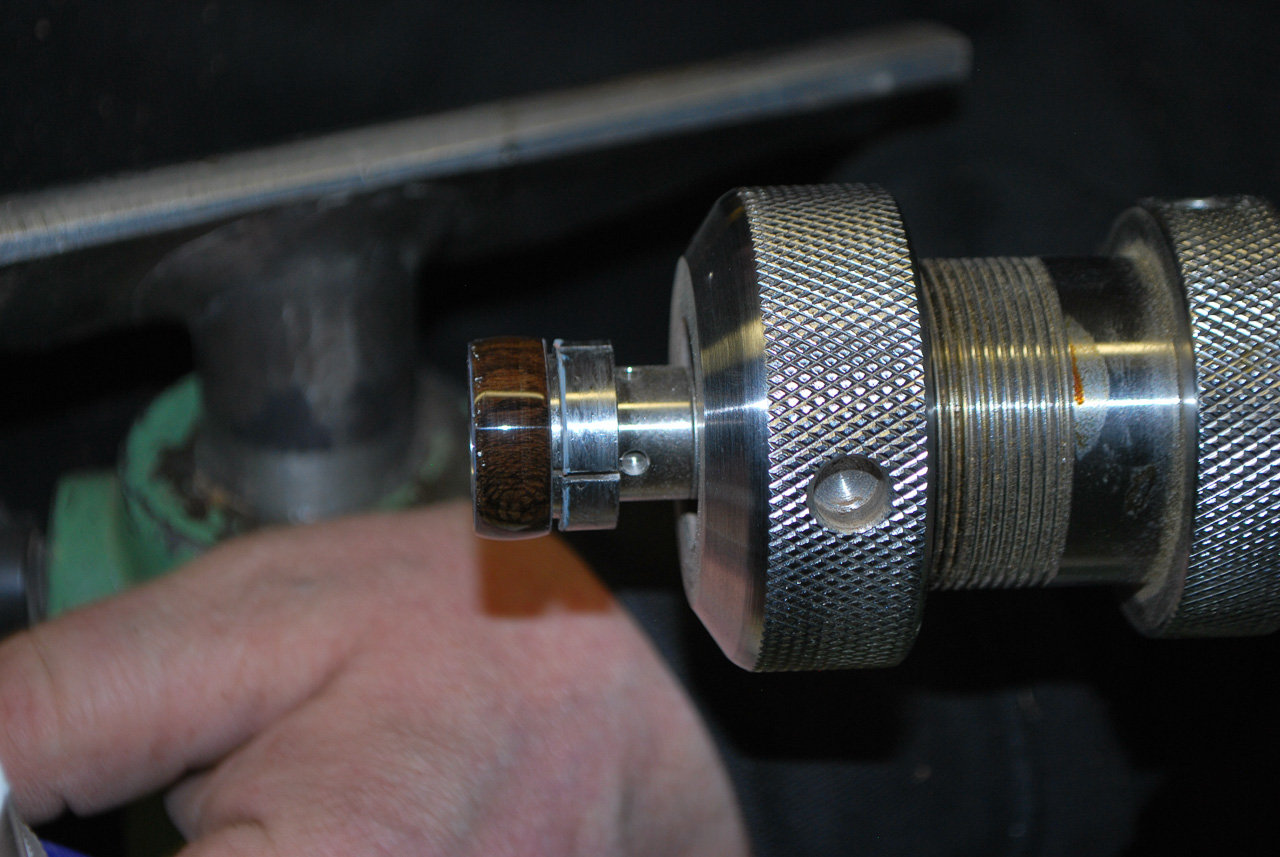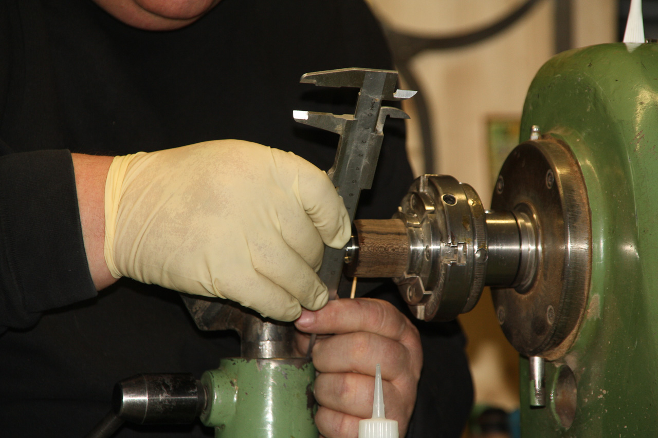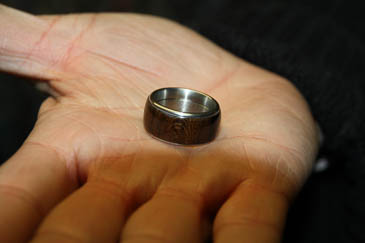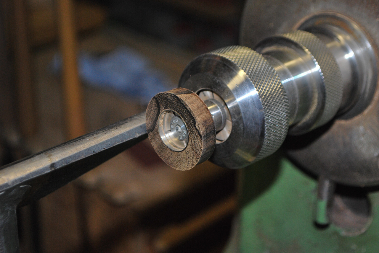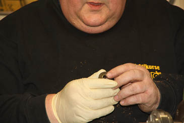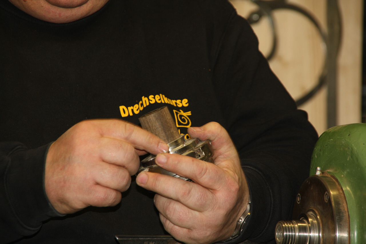 Der Ring wird ganz exakt in den Holzrohling eingebracht und darf auf keinen Fall verkantet werden. |