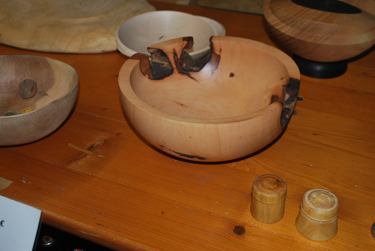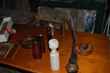 Wie immer: Drechslertreffler bringen schöne Objekte mit. Hier Pfeffermühlen aus Olivenholz. |