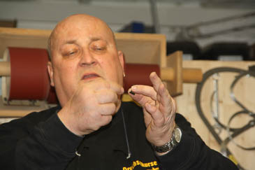 Jetzt bringt Martin mit einem Zahnstocker sorgfältig einen dickflüssigen Sekundenkleber ein. |