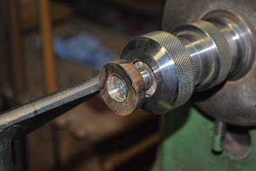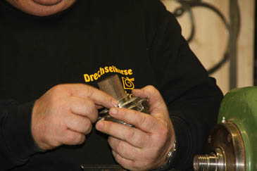 Der Ring wird leicht bombiert. Dann müssen die beiden Aussenseiten exakt plan gemacht werden. Also einmal umspannen. |
