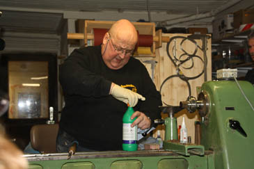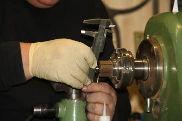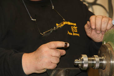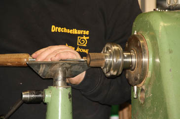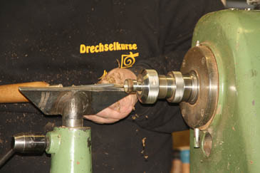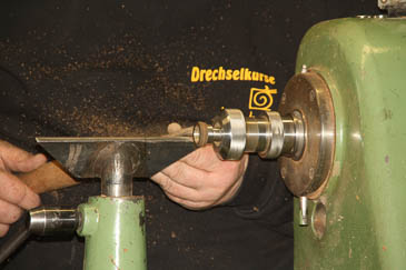Martin drechselt den Ring auf das gewünschte Außenmaß. |