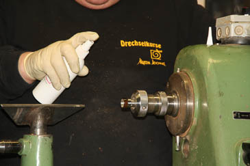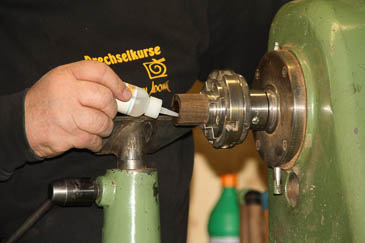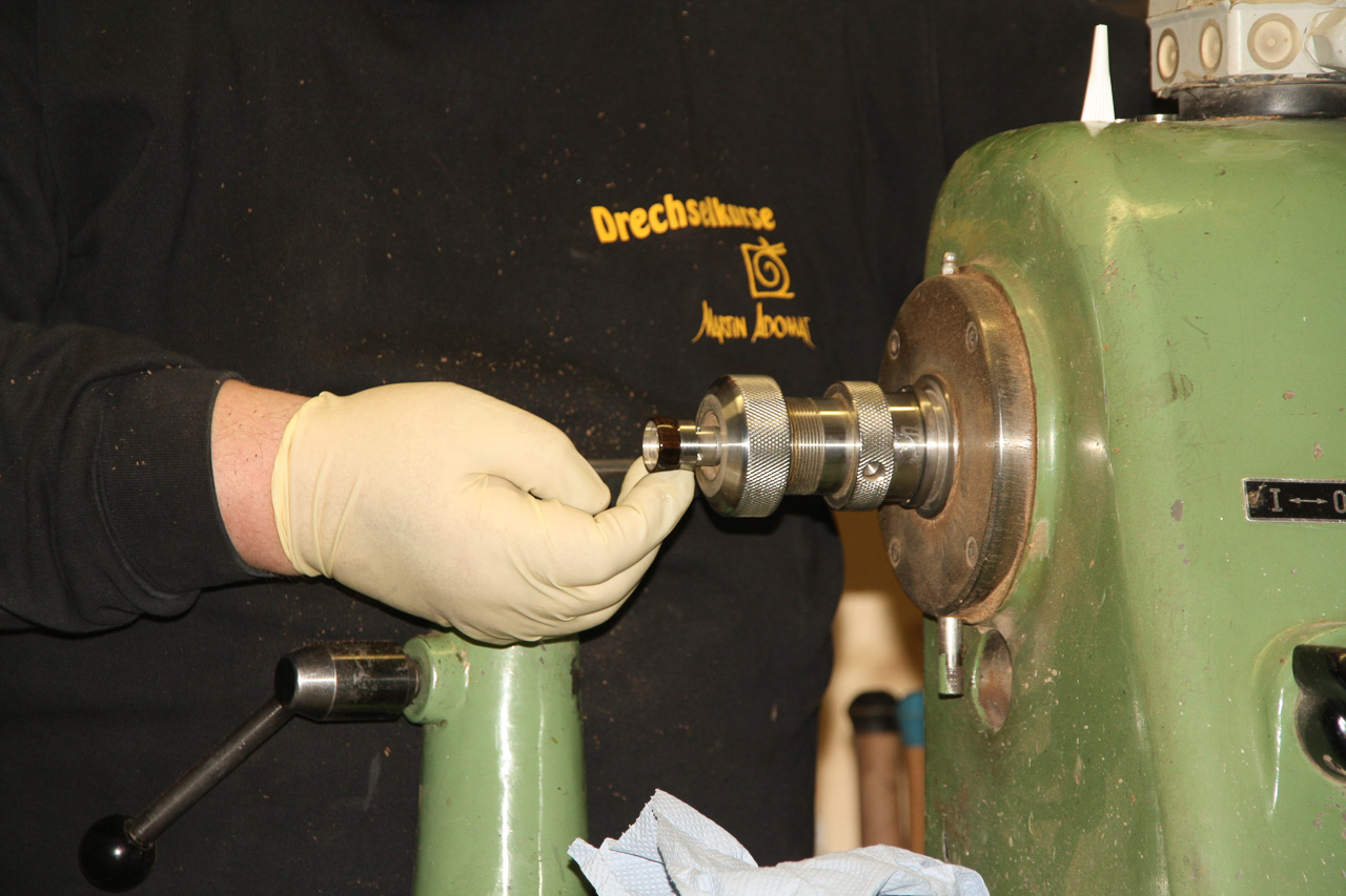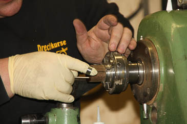 Jetzt wird der Ring in das Spannzangenfutter aufgenommen. |
