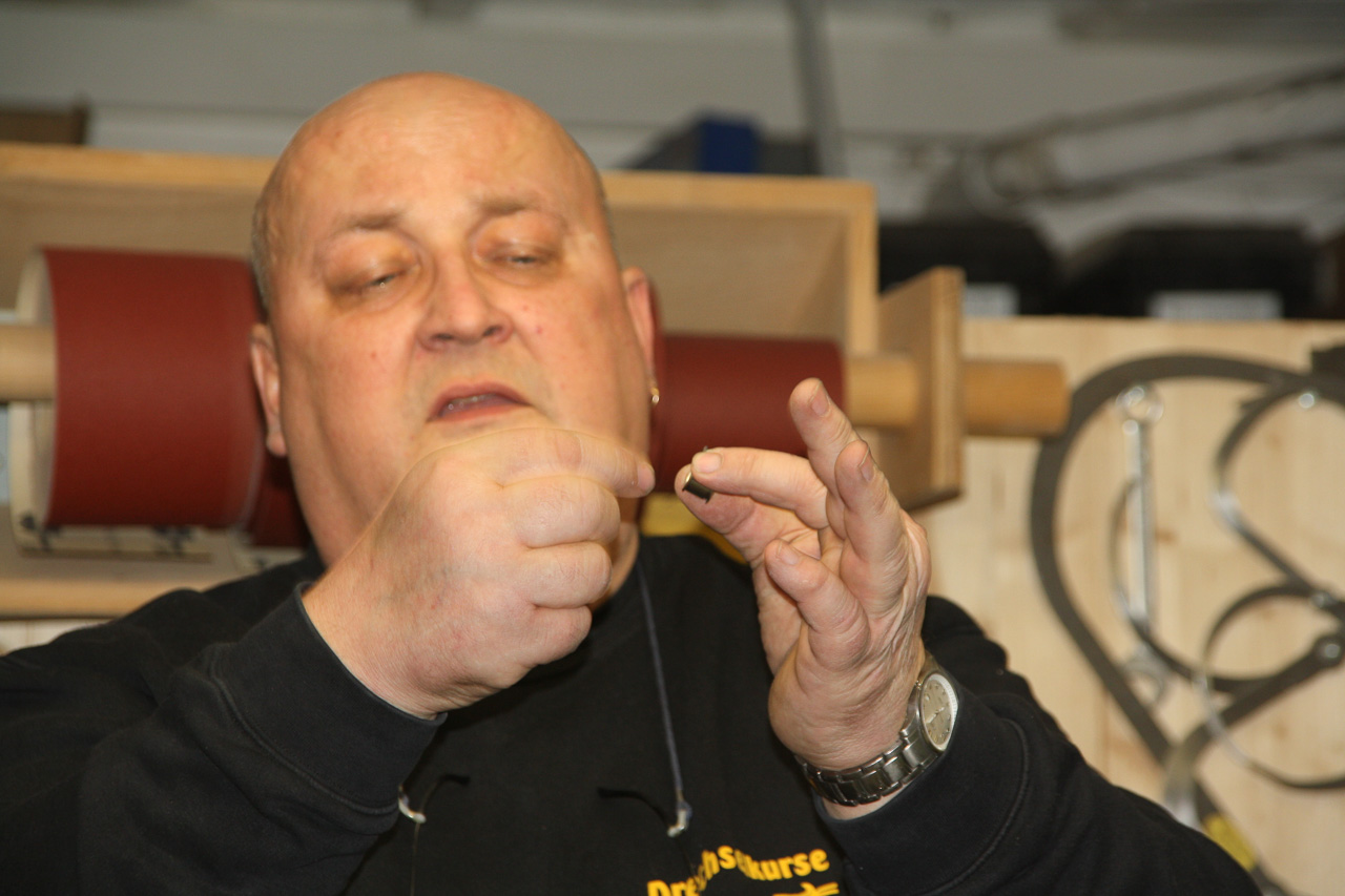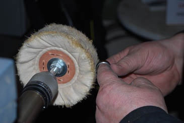 Vorsichtiges Aufweiten des Durchmessers bis zur exakten Größe des Ringes. Mehrmals prüfen, damit's passt. |